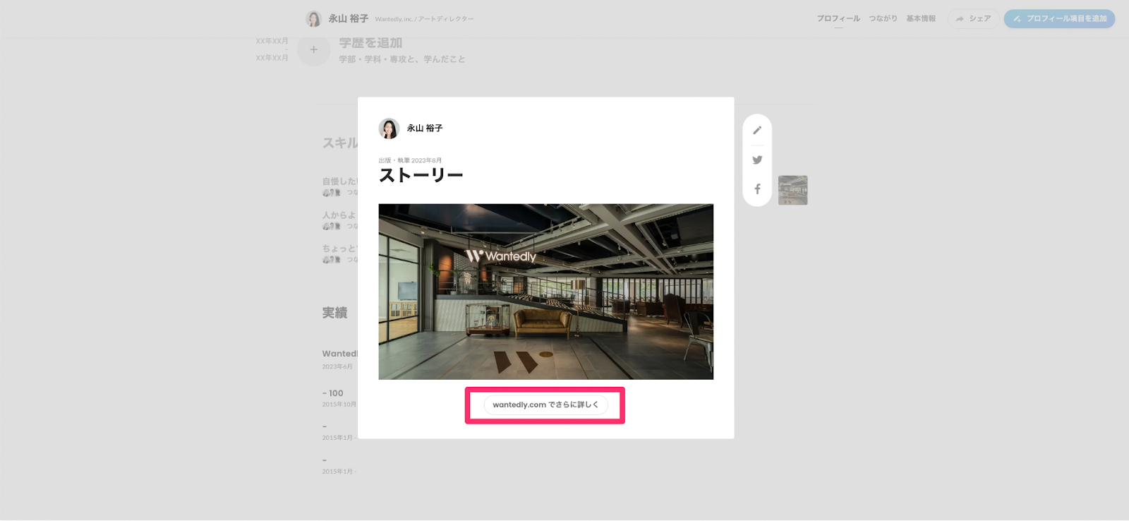 2-1.「wantedly.comでさらに詳しく」をクリック