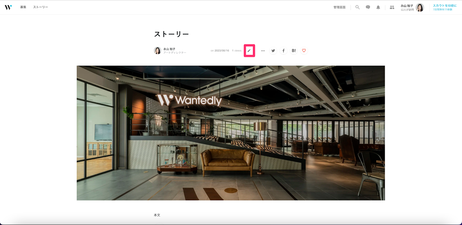 2-2.「鉛筆マーク」をクリック > 編集ページにアクセス