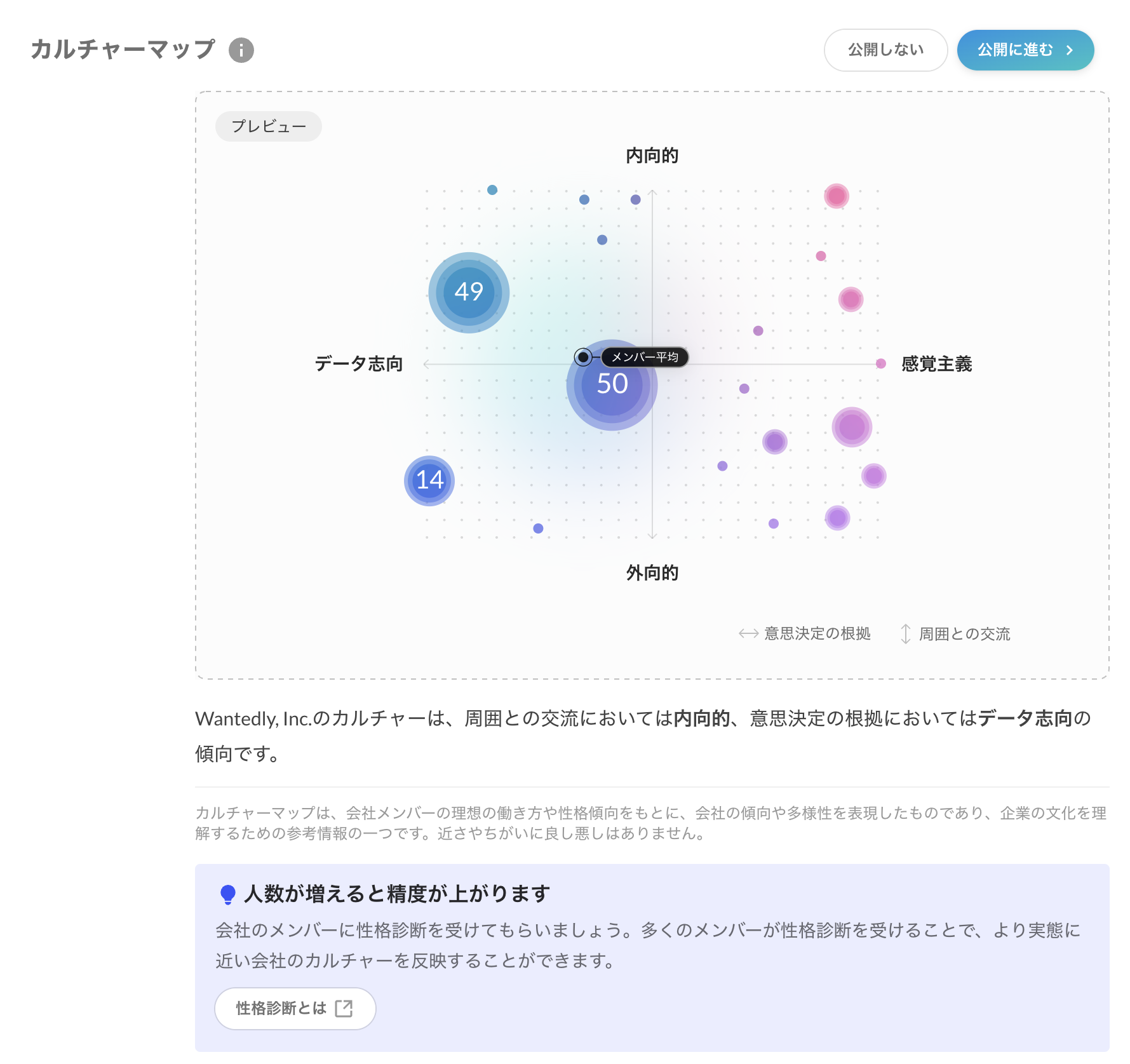 - カルチャーマップは性格診断の受診結果および公開状態によってリアルタイムで変動します。