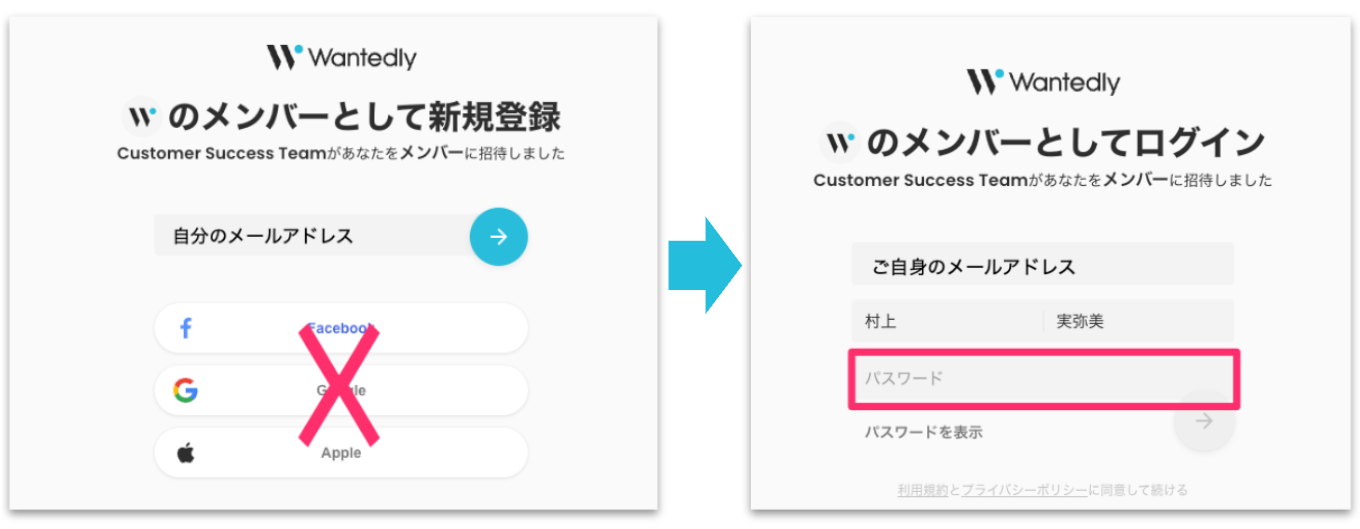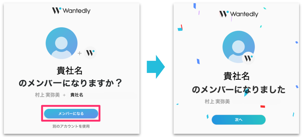 メールの場合は、noreply@wantedly.comから招待が送られているため、招待メールをご確認ください。