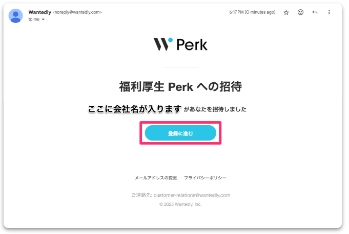 ・Perkのアカウントを作成するには、Perkを契約している企業の管理者から招待を受ける必要があります。