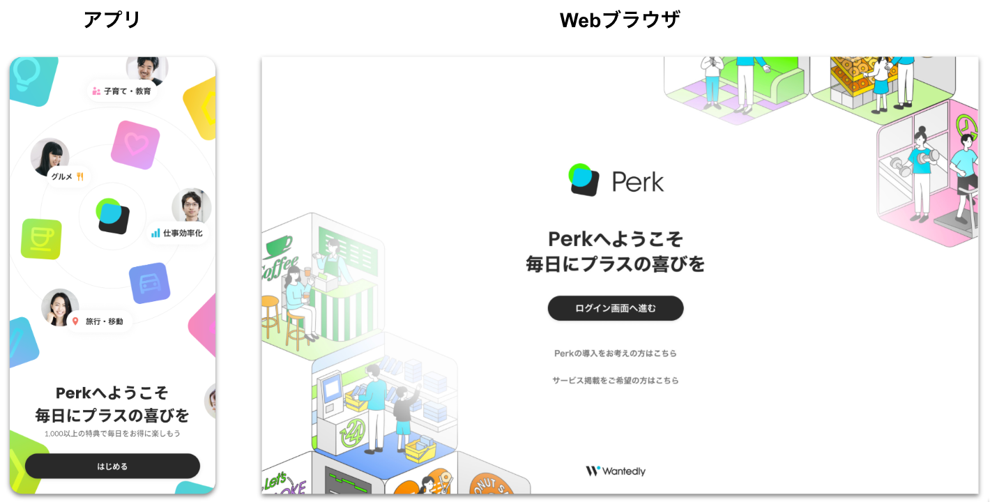Perkは、スマートフォン用のアプリ、またはWebブラウザでご利用いただくことができます。