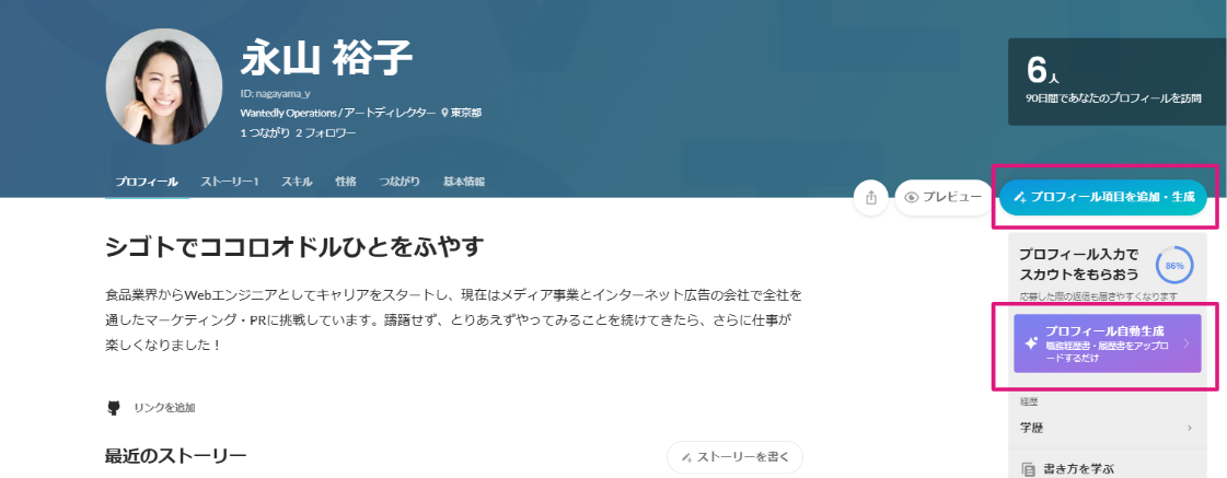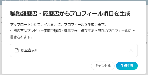 ・プロフィール項目を追加・生成 > 職務経歴書・履歴書から生成