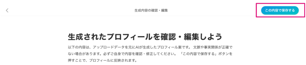 「この内容で保存する」をクリックした場合、自動生成された内容に上書きされます。