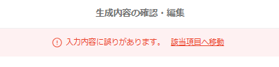 「該当項目へ移動」をクリックし、入力内容の修正をお願いいたします。