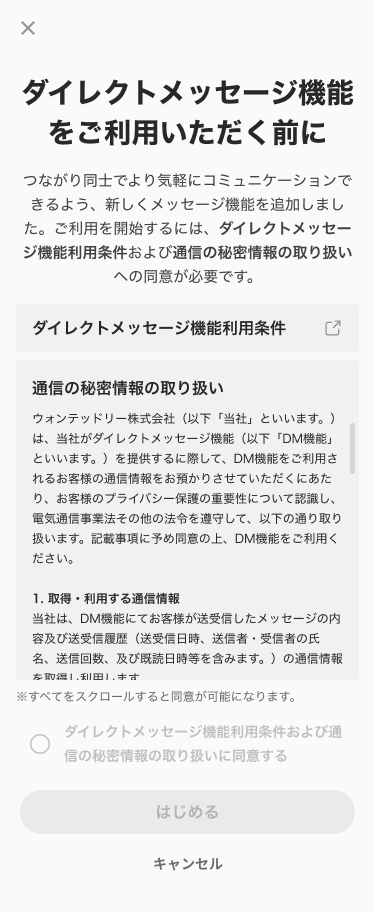 DM機能とはつながり状態のユーザーとメッセージのやりとりができる機能です。