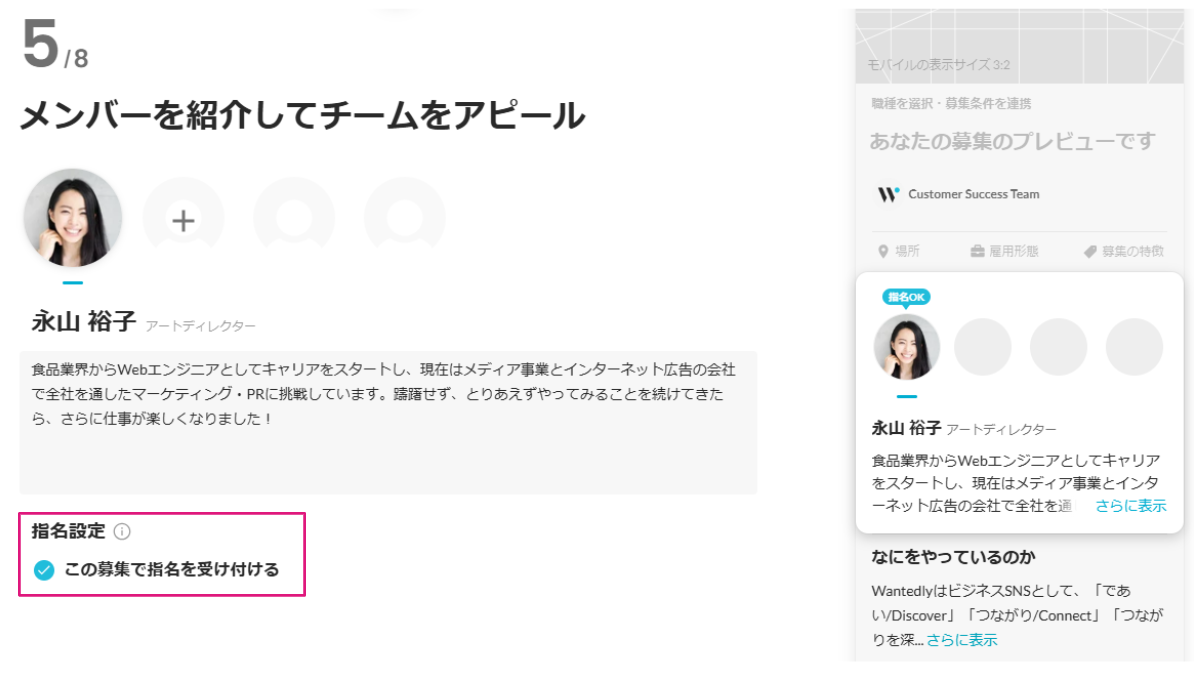 3) 募集ごとに指名設定をする
