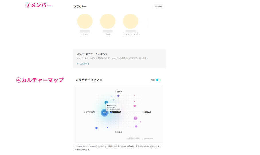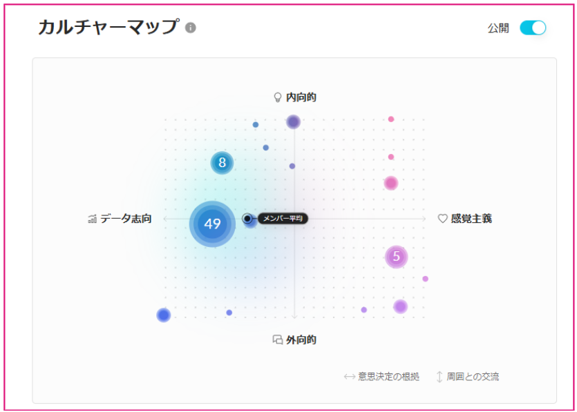 「カルチャーマップ」とは、性格診断の結果に基づき会社のカルチャーを候補者に伝えることができる機能です。
