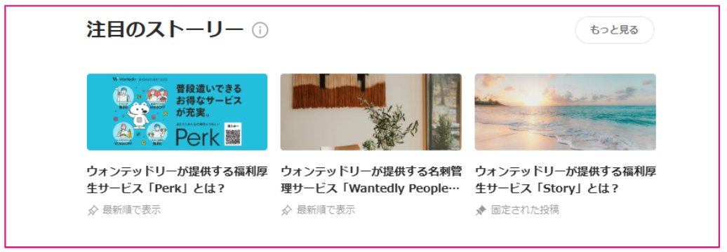 最初の3つは、「注目のストーリー」として設定されている記事が優先的に表示されます。