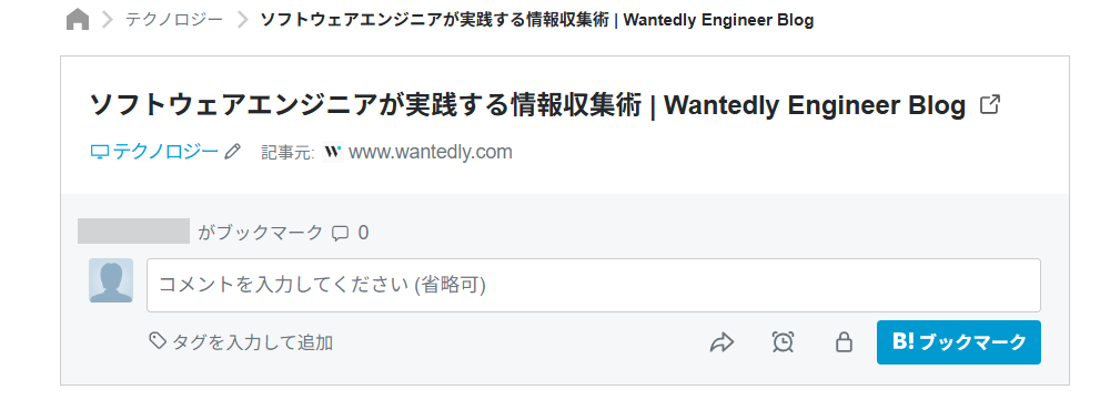 2.はてなブックマークのページに遷移