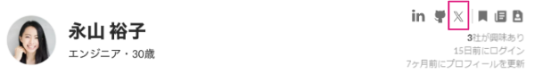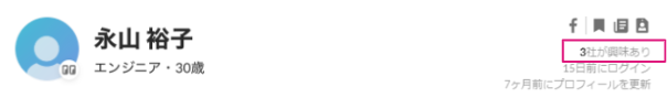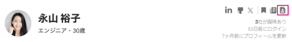 直近で募集を閲覧するなど何かアクションがあった場合は、プロフィール写真の右下に目のアイコンが表示されます。