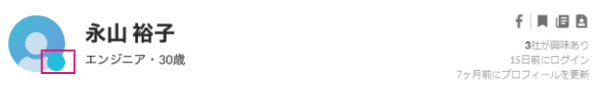 直近でスカウトを受け取る設定にした候補者の写真の右下に青いマークが表示されます。
