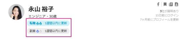 候補者がプロフィール上で設定している転職・副業意欲を表します。